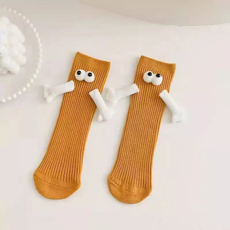 Connect in a fun and whimsical way with magnetic hands that join when standing side by side. Cute eye designs add character and playfulness. Let your socks reflect the joy and happiness you share with your loved one!